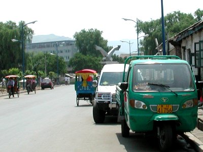 輪タクがたくさん走っていました。