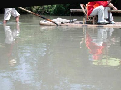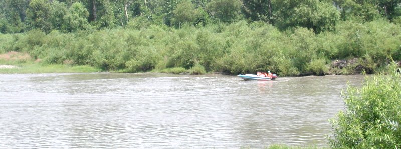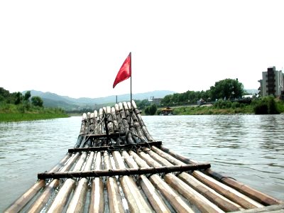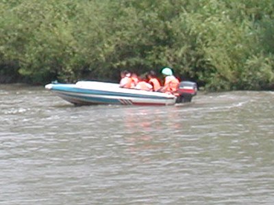 モーターボートで筏舟の乗り場に向かいました。