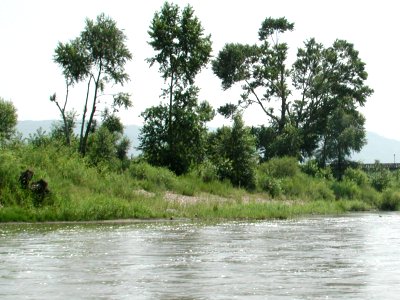 北朝鮮側の岸に寄ると、北朝鮮の人の姿がみえました。