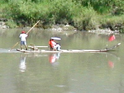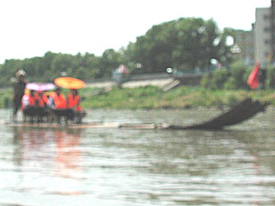 筏舟に乗りました。左は船頭さん、右は舟頭です。