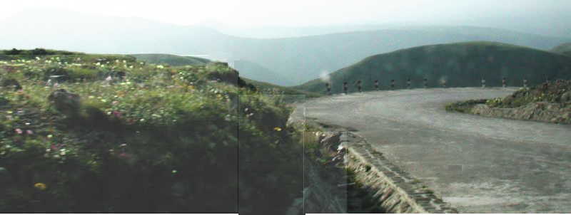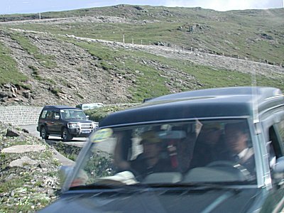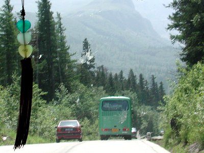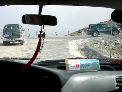 運動員村で4輪駆動車に乗り換え、車で登山開始です。