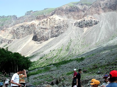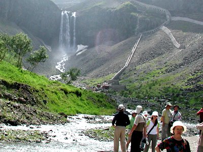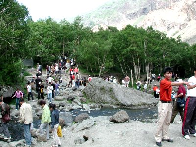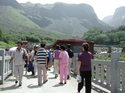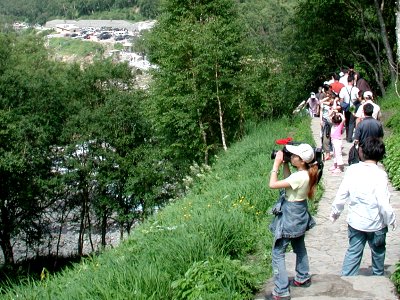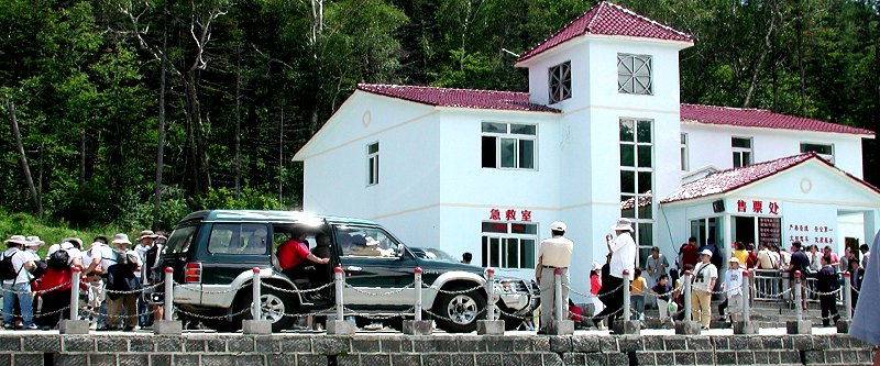 でいて大勢の人が乗車待ちをしていました。この待ち時間の間、私達は長白山瀑布の見物に行きました。