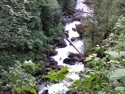 谷底森林へは1〜1.5キロメートルの白樺や樅等の原生林中の桟敷道です。途中には所々に谷底に続く